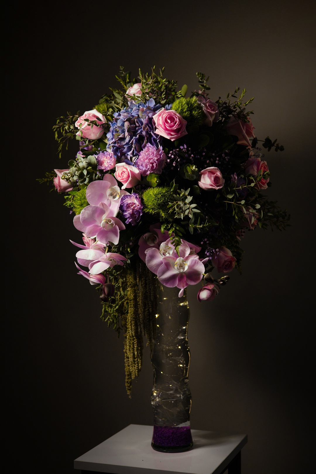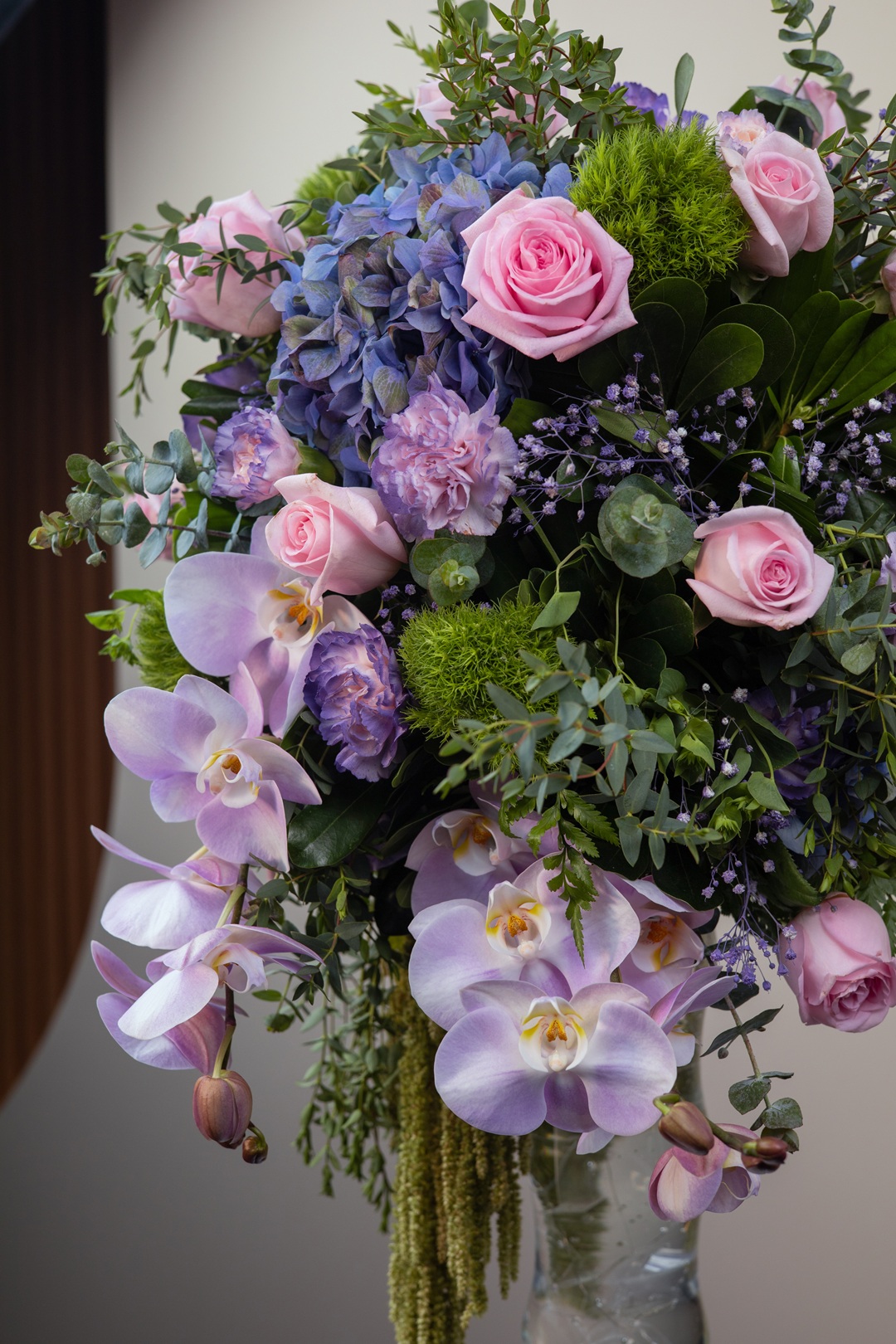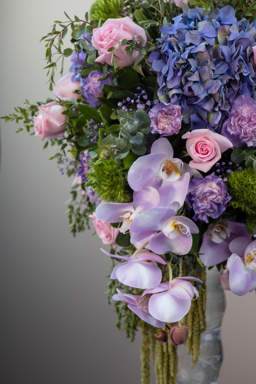 Este arreglo floral es una sinfonía visual que celebra la elegancia y la sofisticación. Con una paleta de tonos lavanda, rosa pastel y acentos verdes, “Euforia Lavanda” combina la delicadeza de las rosas rosadas, la exuberancia de las hortensias …